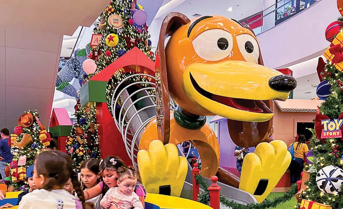 No Shopping Rio Poty, em Teresina (PI), o Natal ganha clima de quarto infantil gigante com a decoração de Toy Story, de 1º de dezembro de 2025 a 6 de janeiro de 2026.