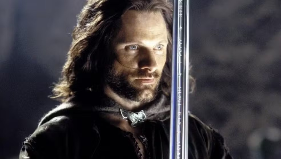 Agora fica a pergunta digna de Valfenda: você prefere um Aragorn jovem… ou ninguém além de Viggo pode carregar essa espada?